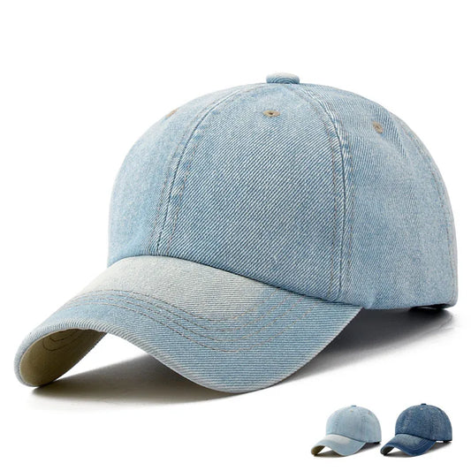 Unisex Solid Denim Baseball Cap Blank Washed Jean Hat Casquette Adjustable