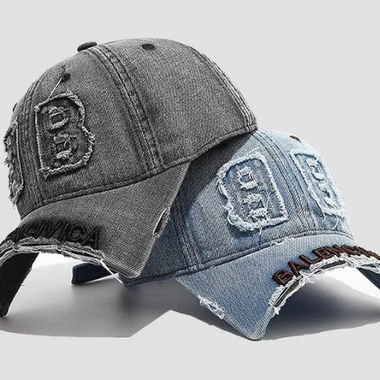 Fashion Denim Baseball Cap Women Men Hats Vintage Distressed Letters Embroidered